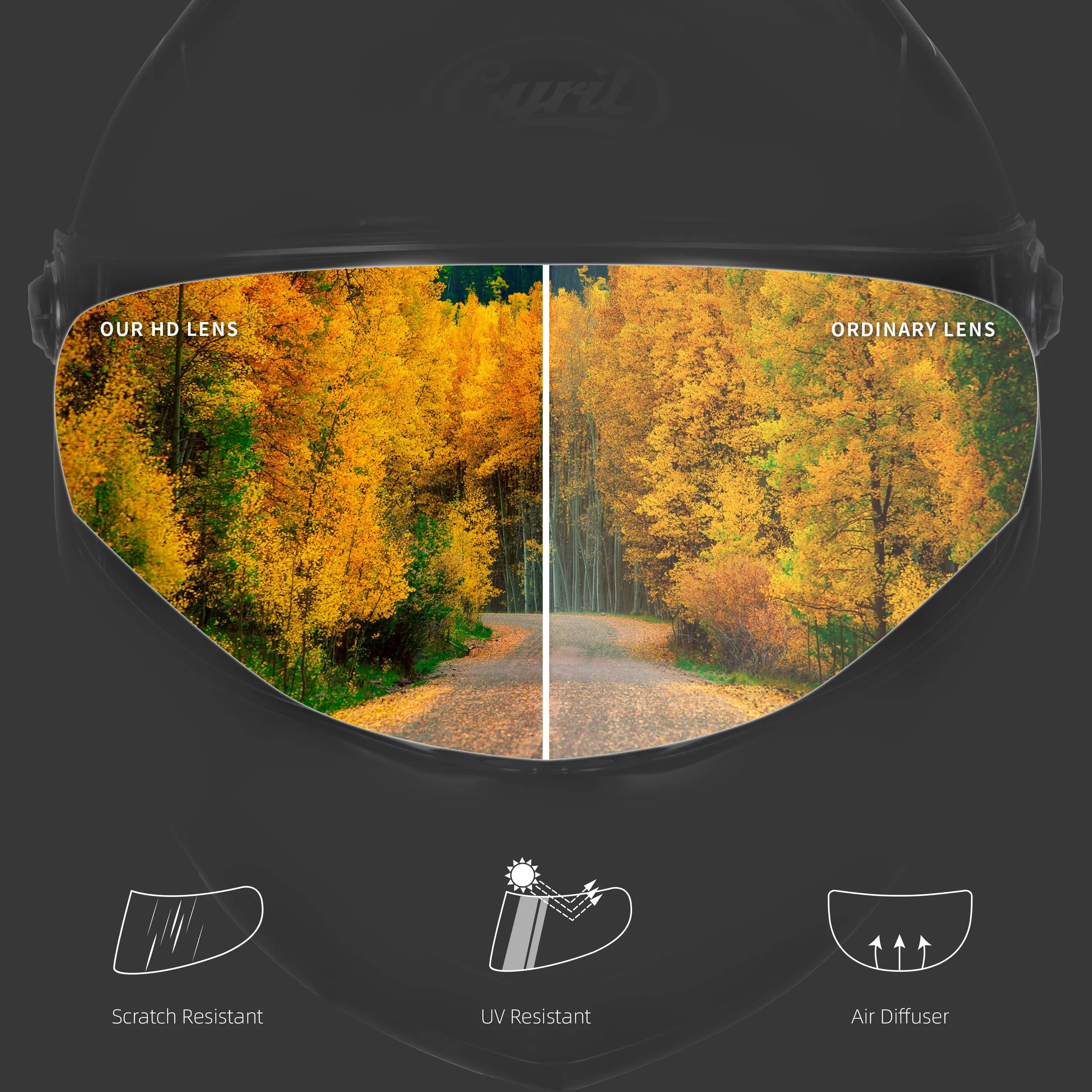 Our HD lens equipped tinted visor beautiful glossy UV protective finished with extra clear visor,Anti-scratch, anti-glare