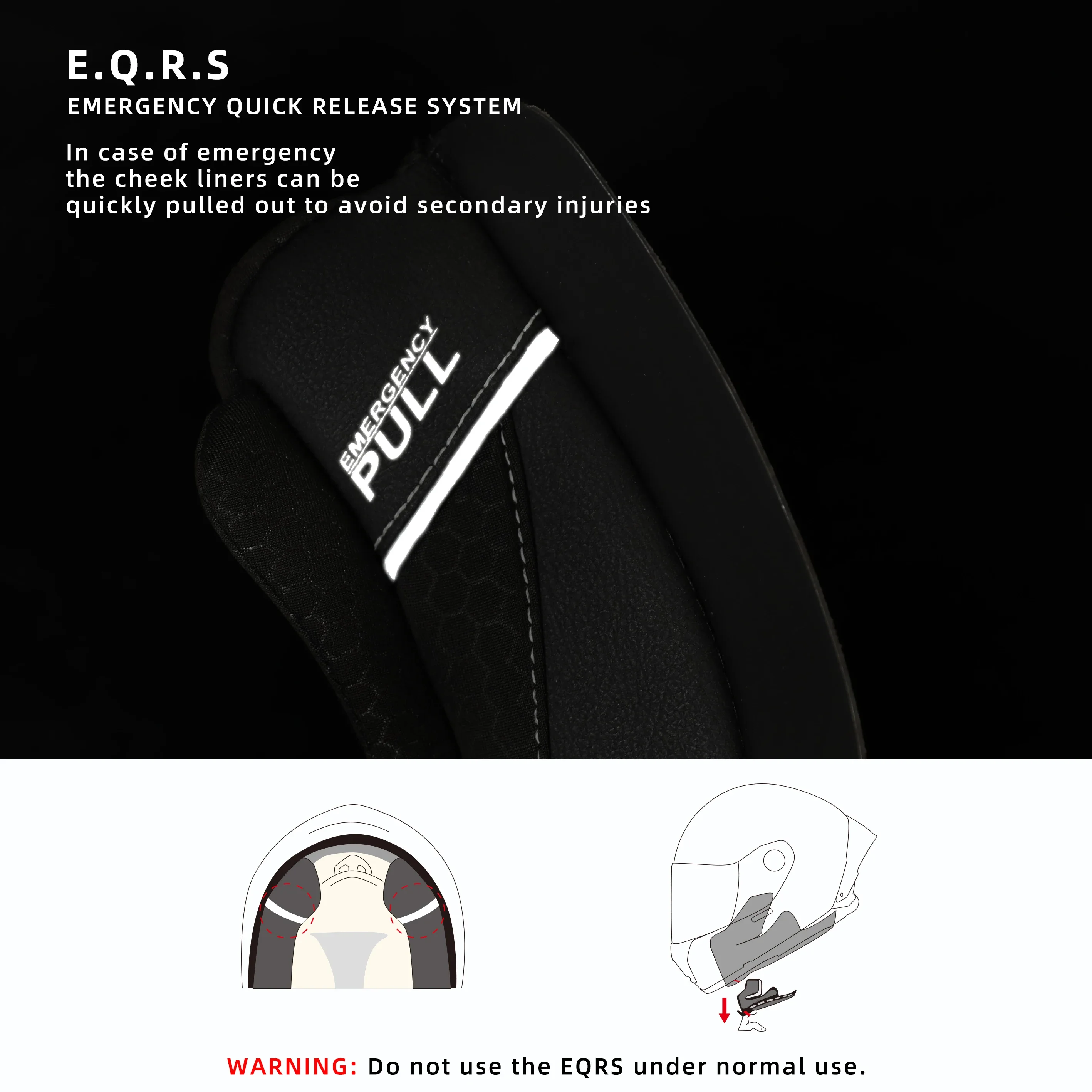 In case of emergency, the cheek liners can be quickly pulled out to avoid secondary injuries