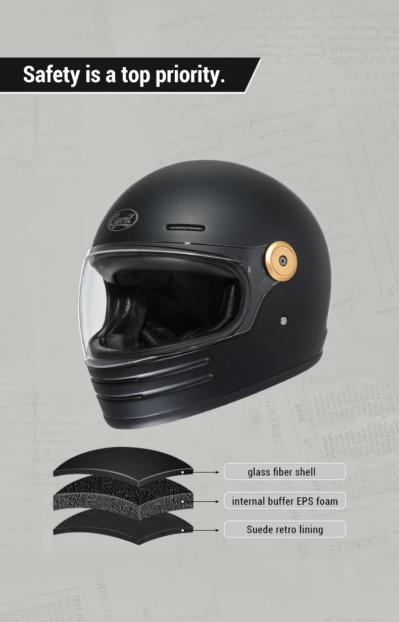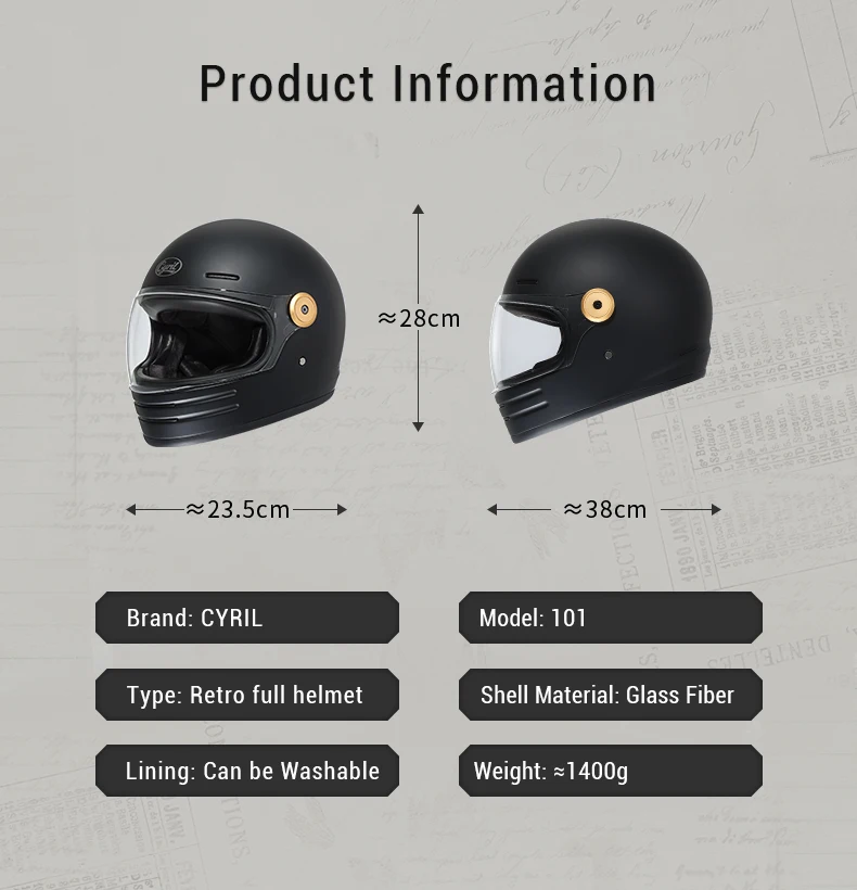The CYRIL Glass Fiber Full Face Motorcycle Helmet combines lightweight engineering with robust protection. Constructed from premium fiberglass, this unisex helmet delivers DOT-certified safety standards for street and off-road riding. Weighing just 1400g, it reduces neck fatigue during extended rides while maintaining structural integrity. The full-face design provides comprehensive coverage and wind protection, making it ideal for both casual commuters and serious motorcyclists. Its retro aesthetic appeals to riders seeking classic styling without compromising modern safety features. Perfect for adults seeking reliable, certified protection at a practical weight.